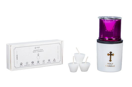 St. Michael’s Smokeless Elegant Prayer Candle System with Wind Protector (10 Candles & 1 Luxurious Holder)