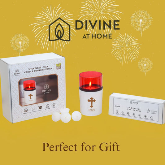 St. Michael’s Smokeless Elegant Prayer Candle System with Wind Protector (10 Candles & 1 Luxurious Holder)